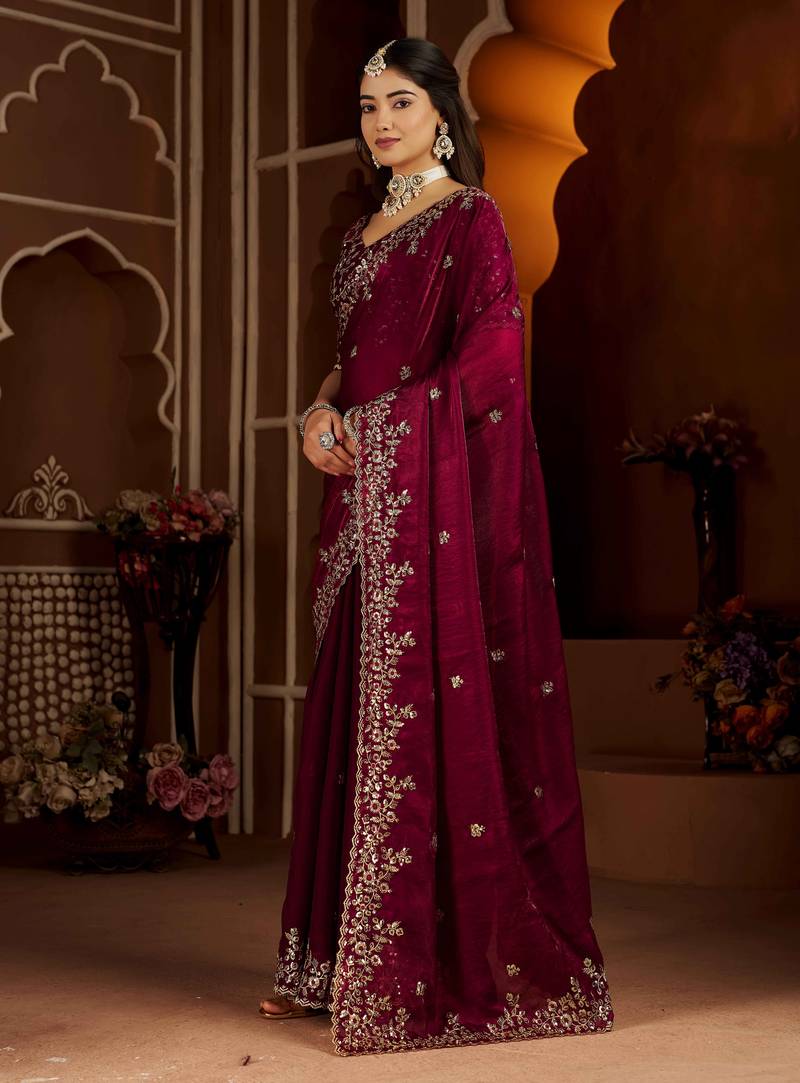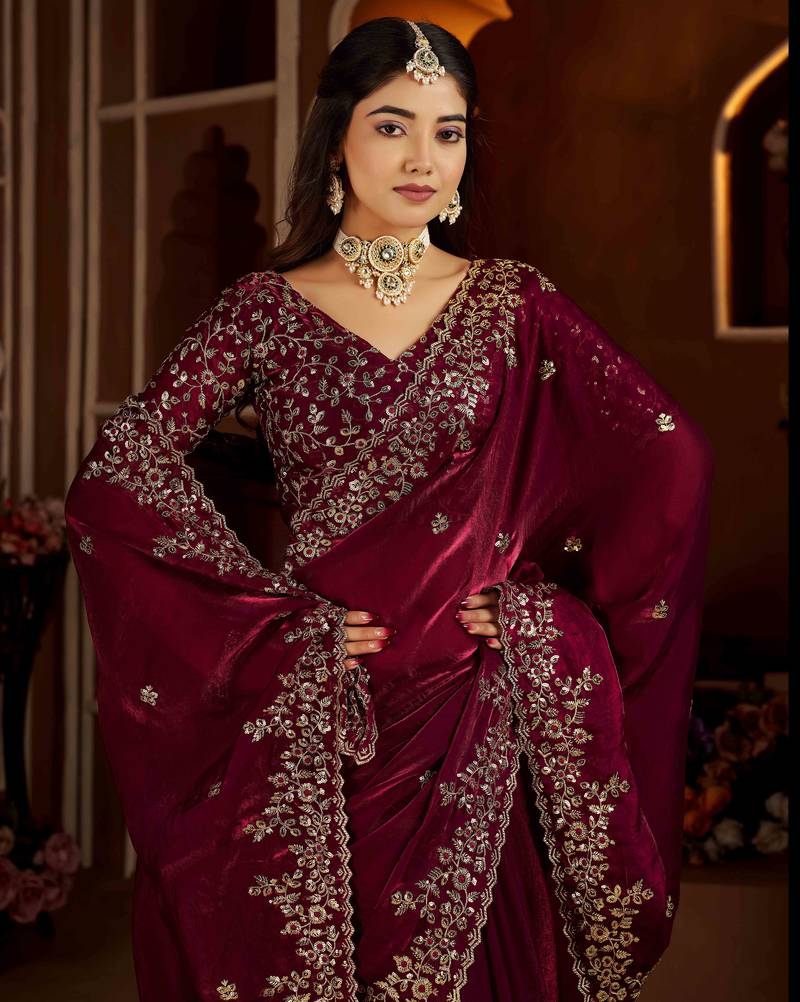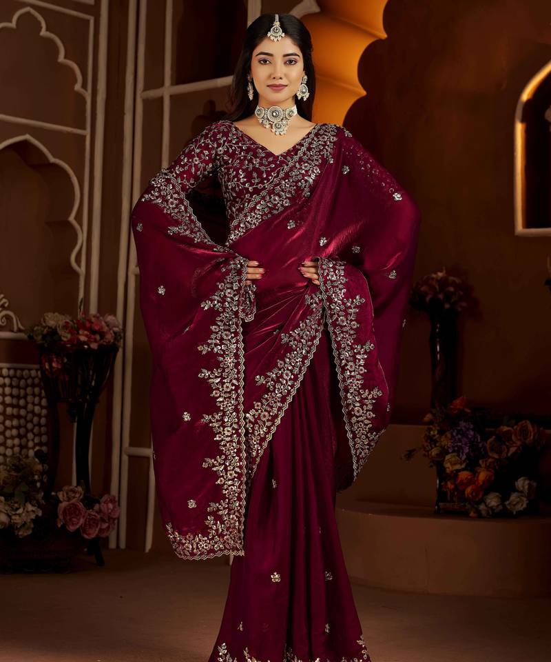 | Product Name | Wine Color Satin Silk Saree With Heavy Jari Embroidery Work & Designer Blouse | |