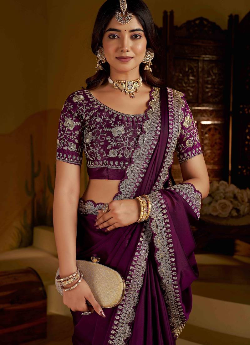 Product Name Wine Rangoli Silk Saree With Heavy Embroidery Work And Heavy Work
