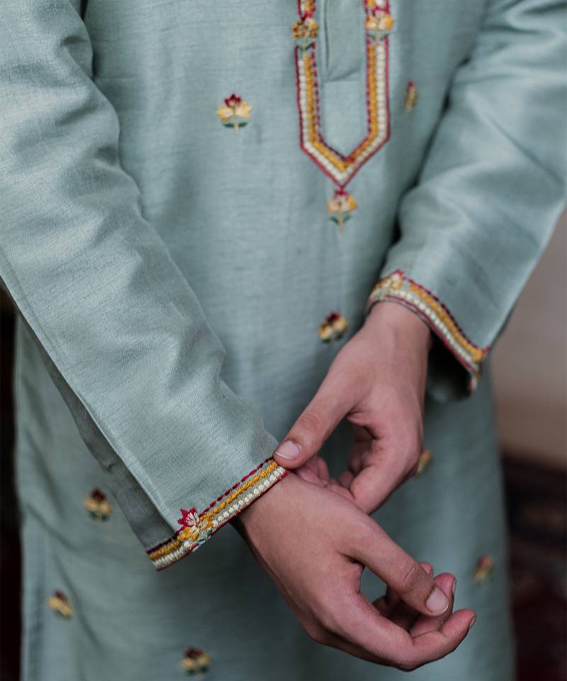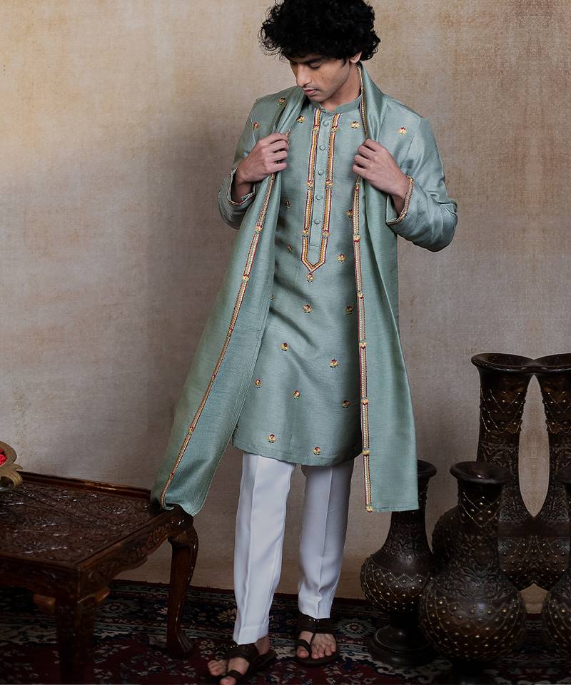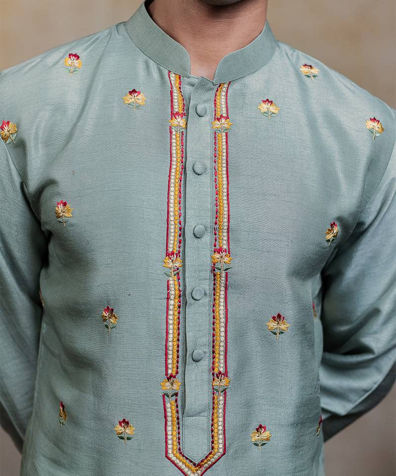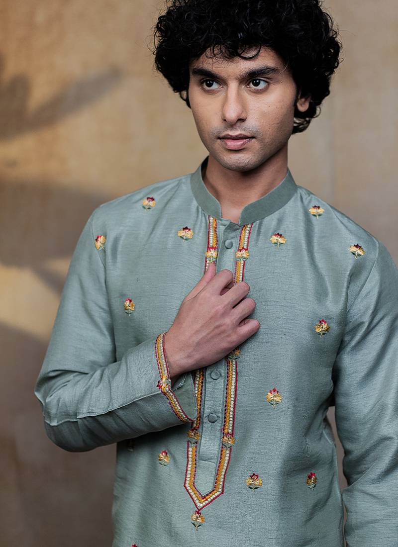 | Product Name | Olive Green Embroidered Silk Kurta With Dupatta | |