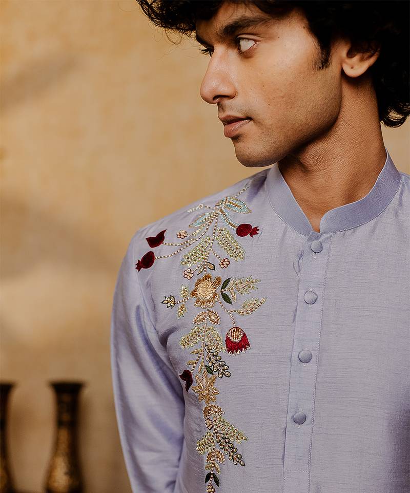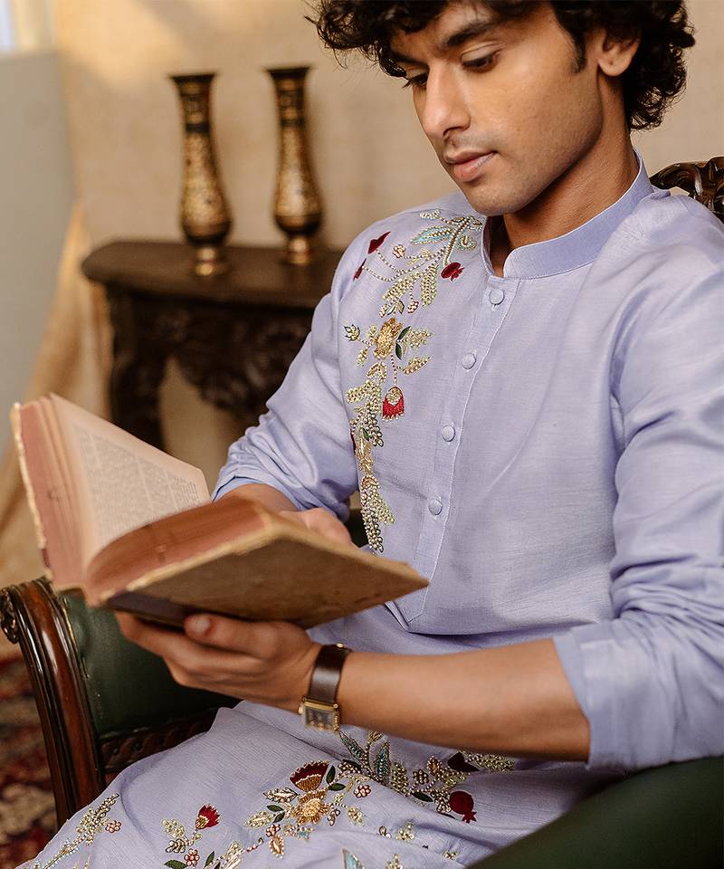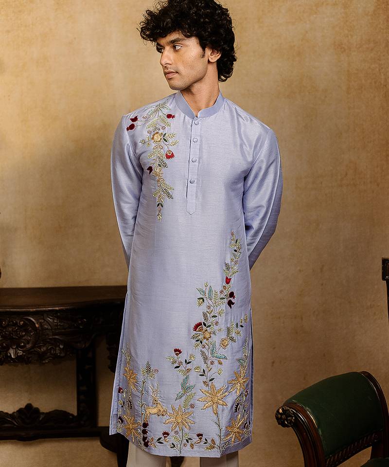 | Product Name | Powder Blue Embroidered Silk Kurta With Dupatta | |