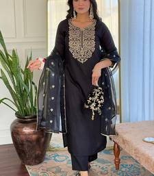 | Product Description | A Festive Black Color Viscose Suit Featuring Swaroski Work And Embroidery. Styled With Quarter Sleeves, Keyhole Neckline And A Drawstring Closure, Dupatta ”Ideal For Pooja And Festive Occasions |