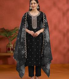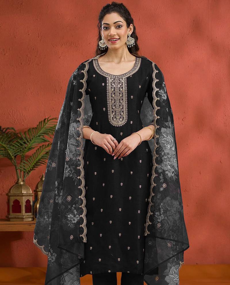 Black vichitra silk embroidered semi sttiched kurta set
