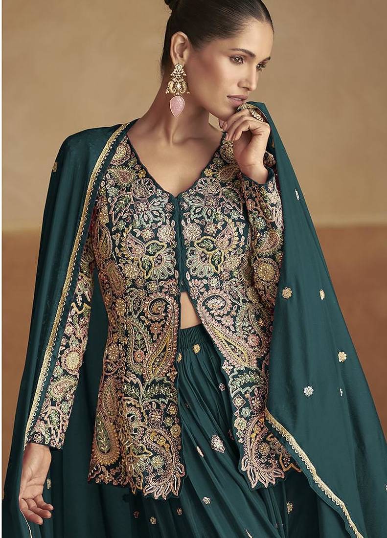 | Product Description | Designed In Luxurious Dark Green Chinon Silk , This Festive Palazzo Set Features An Short Kurta Detailed With Zardosi And Thread Embroidery For A Refined Finish. Styled With A V Neckline And Full Sleeves, It Is Paired With Flared Palazzos And An Chinon Dupatta. |
