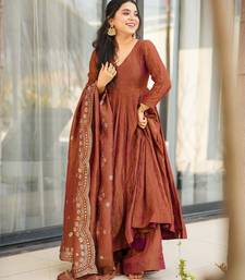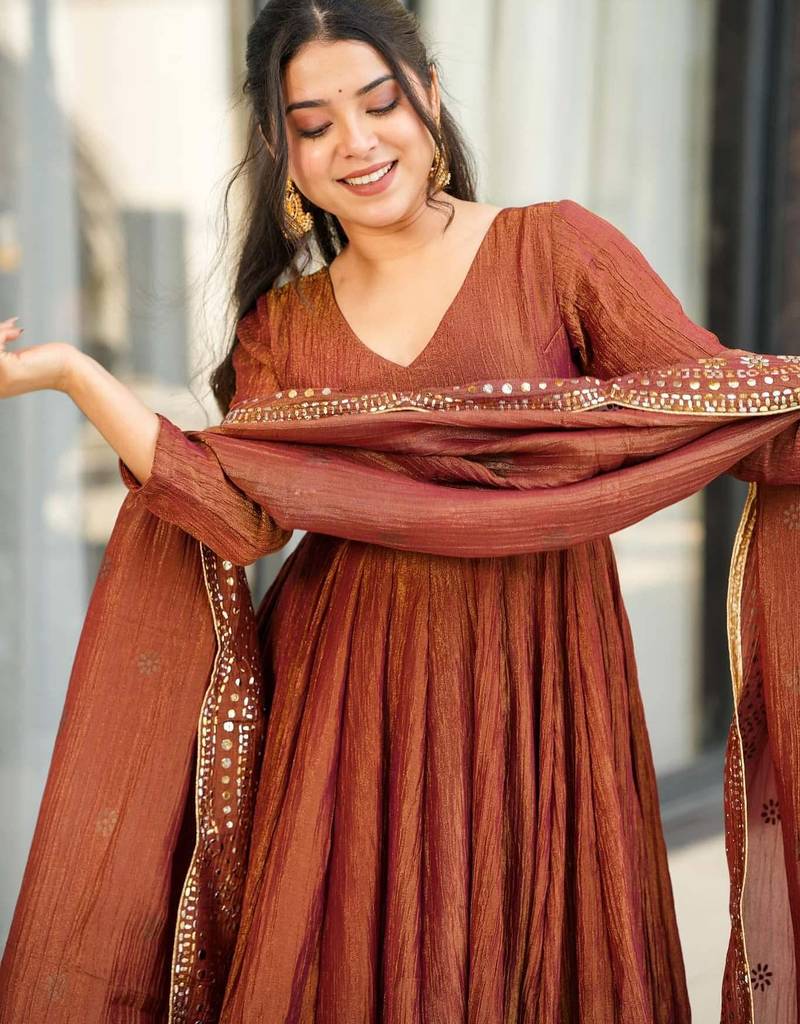 Designer party wear brown color chinon gown with embroidery sequence work dupatta stitched