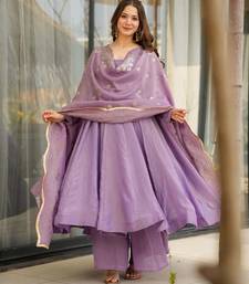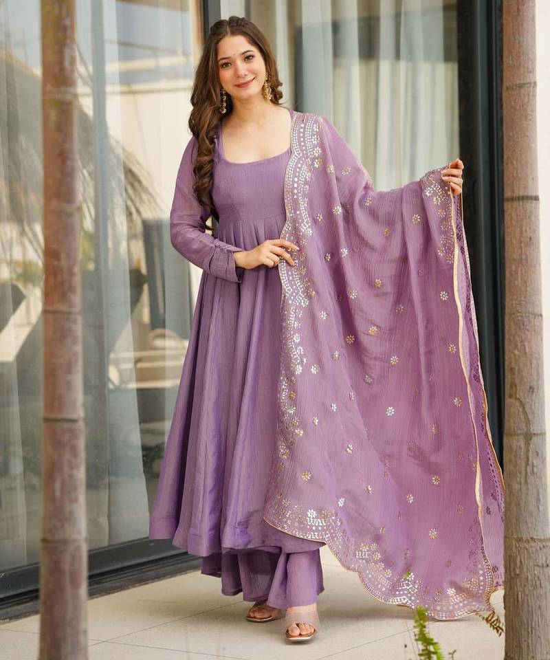 Designer party wear lavender color chinon gown with embroidery sequence work dupatta stitched