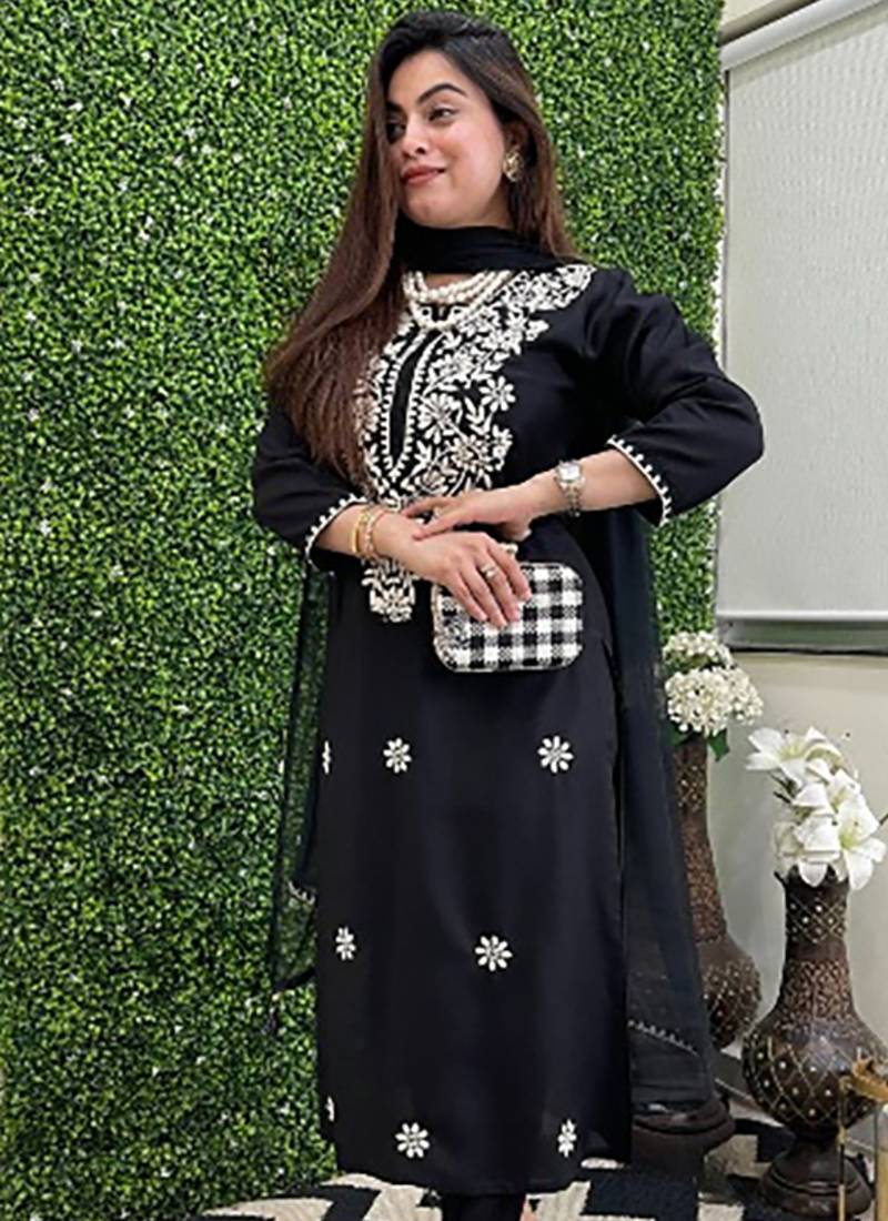 Embroidered black chanderi viscose festival trendy salwar kameez stitched