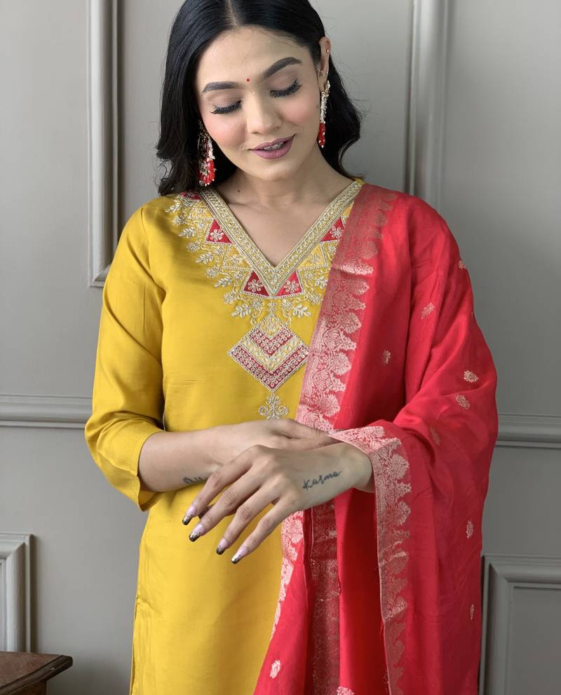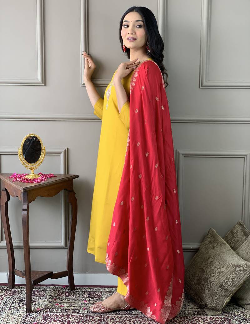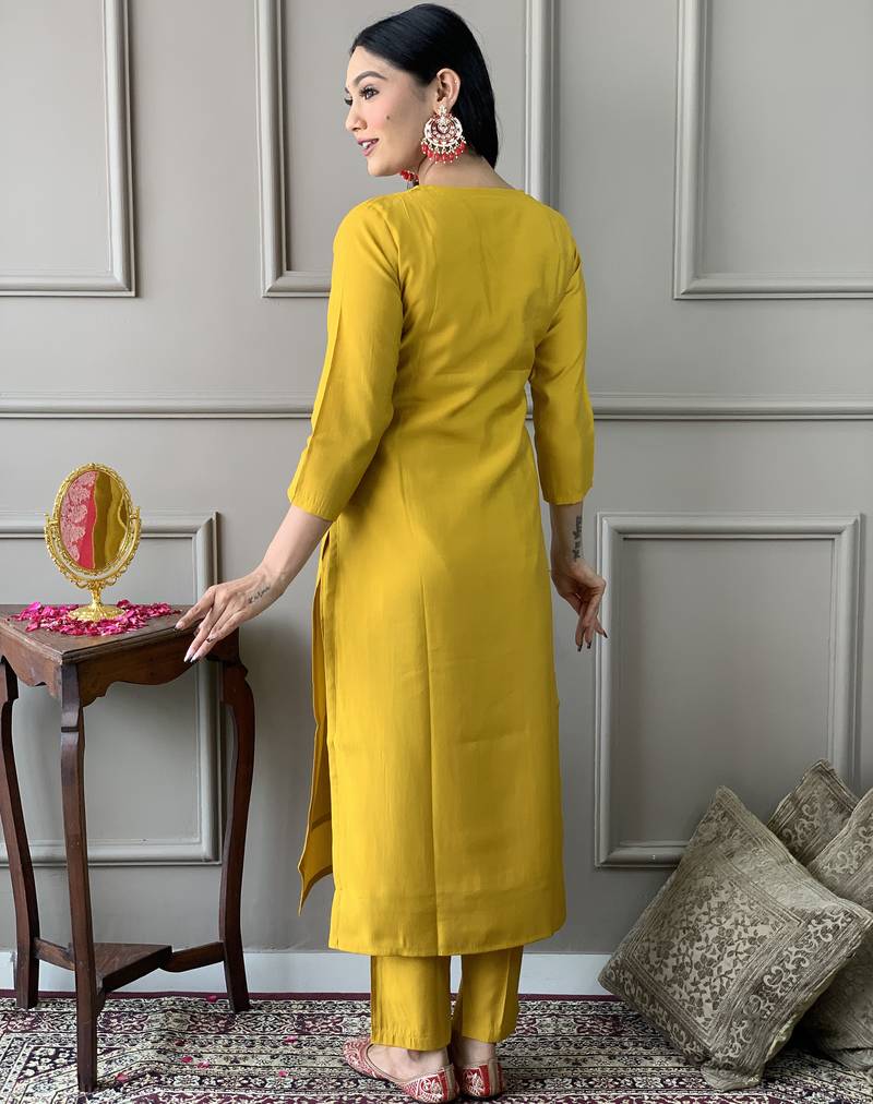 Embroidered mustard festival chanderi cotton readymade salwar kameez stitched