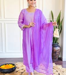 Lavender chanderi embroidered sttiched suit stitched