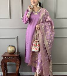 Lavender embroidered chanderi kurta set stitched