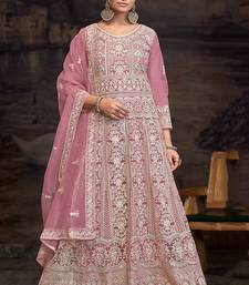 Light pink net embroidered anarkali salwar kameez semi stitched