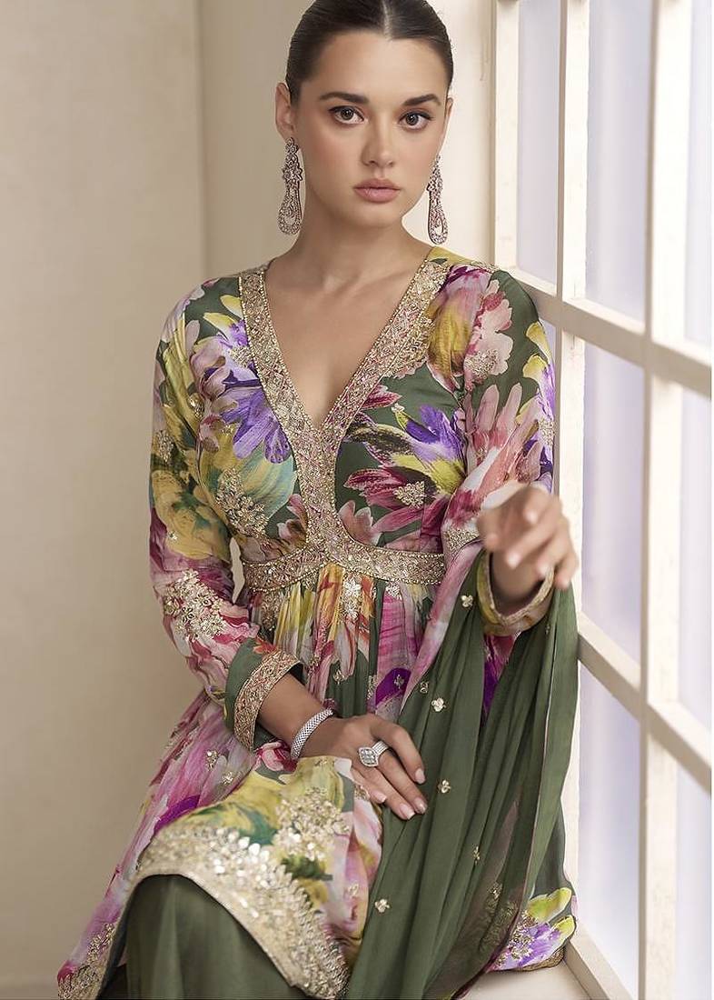 | Product Name | Mehendi Green Color Chinon Silk Palazzo Set | |