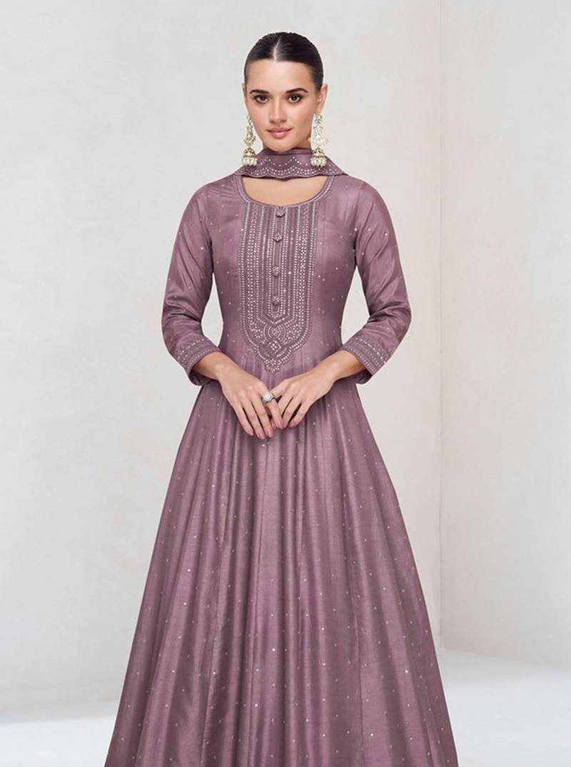 Onion pink vichitra silk anarkali suit semi stitched
