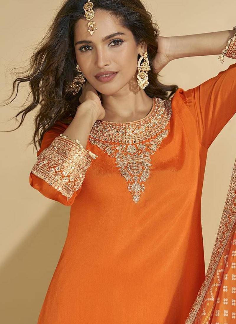 | Product Name | Orange Color Chinon Palazzo Suit | |