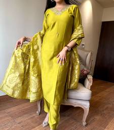 | Product Name | Parrot Green Embroidered Chanderi Kurta Set | |