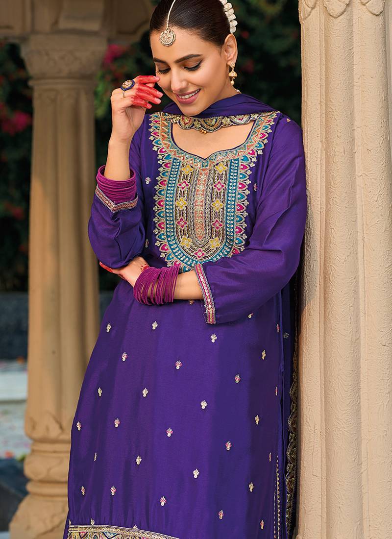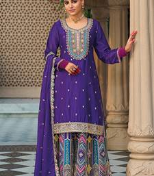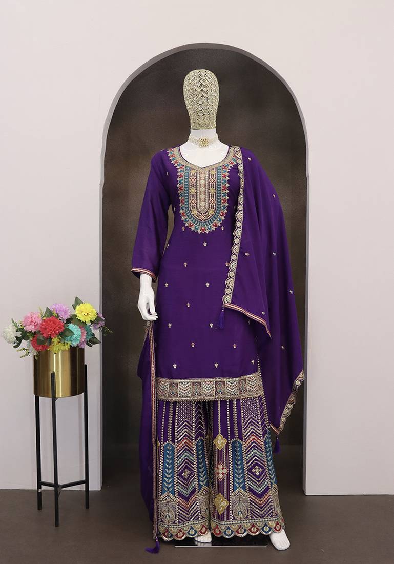 Purple chinon silk palazzo set semi stitched