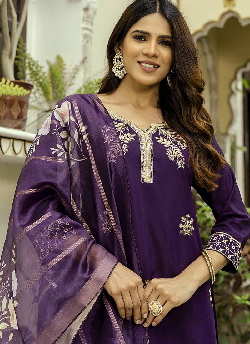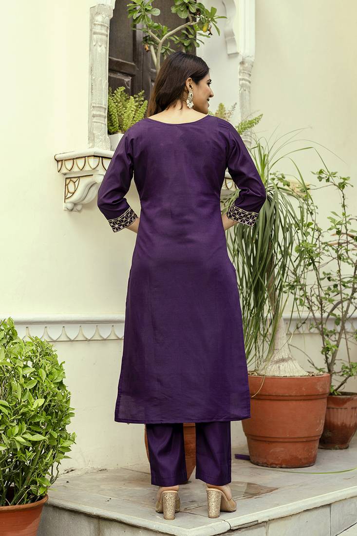| Product Name | Purple Viscose Chanderi Embroidered Kurta Set | |