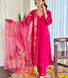 Rani pink chinon silk embroidered ready made kurta set stitched