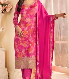 Rani pink chinon silk embroidered salwar kameez semi stitched