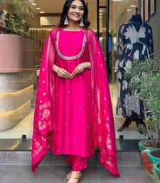 Rani pink color chanderi viscose sttiched kurta set stitched