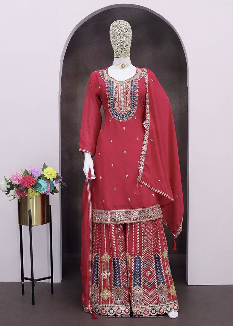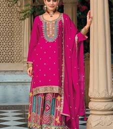 | Product Description | Soft Butti Detailing Lends Subtle Character To This Rani Pink Chinon Silk Palazzo Suit, Giving It A Serene Yet Festive Edge. The Chinon Silk Lace Work Dupatta Completes The Look With Textured Elegance, Perfect For Intimate Celebrations Or Formal Gatheri.Note : This Suit Will Be Sttiched Free Size 42" |
