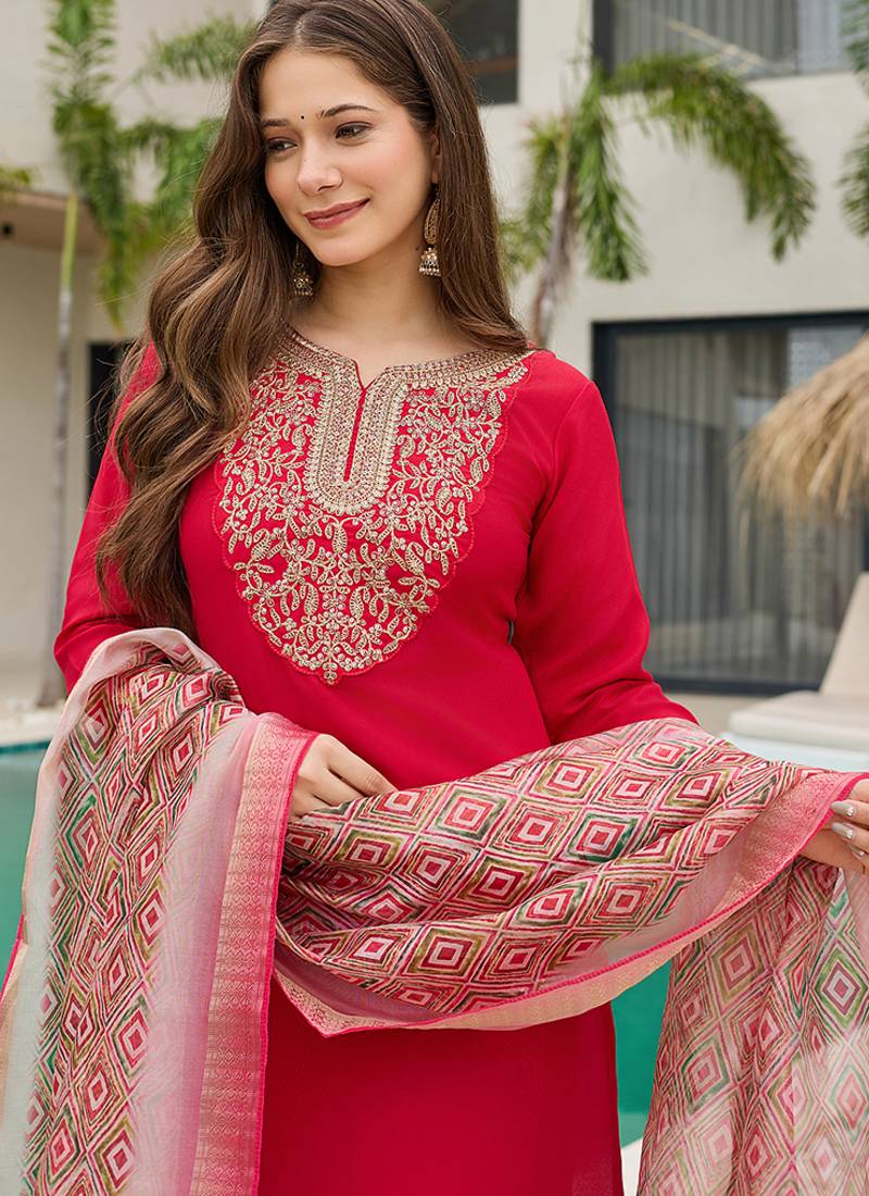 | • | Dupatta | : | Color- Rani Pink / Fabric- Organza |