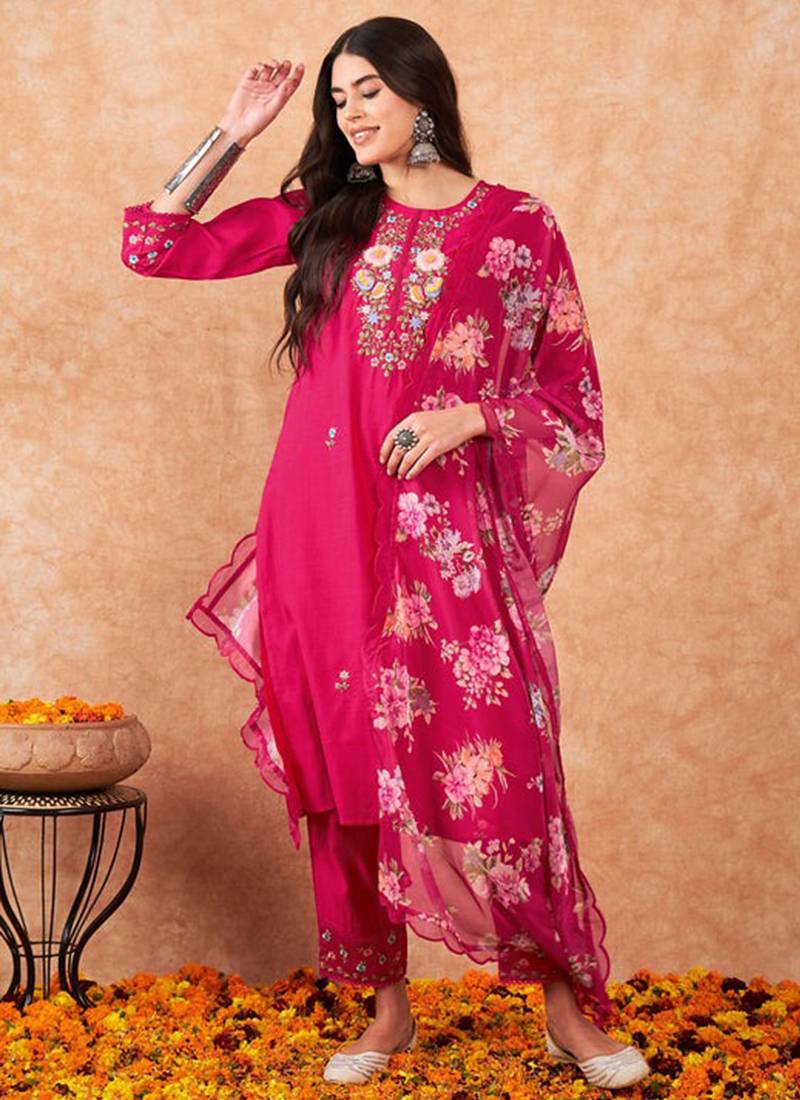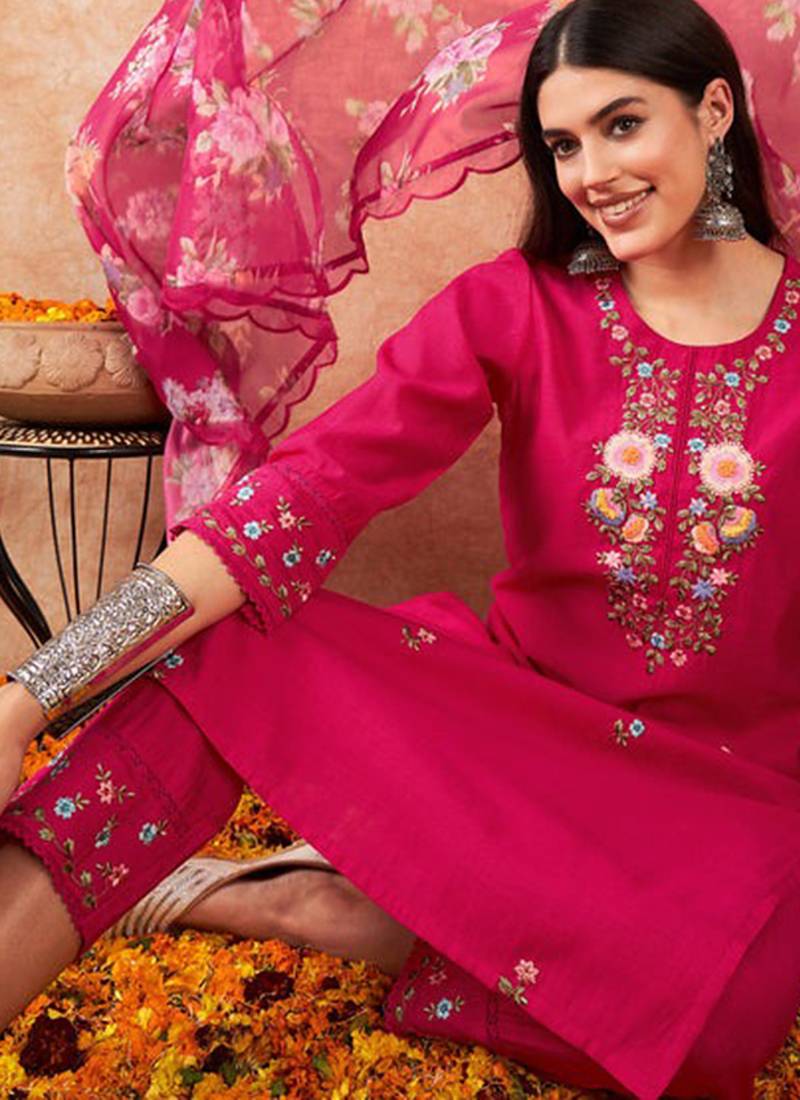| Product Description | This Rani Pink Kurta Set In Chanderi Viscose Fabric Exudes Quiet Elegance, Making It A Timeless Pick For Festive Gatherings. The Kurta Is Paired With Matching Straight Pants And A Sheer Organza Dupatta, All Subtly Enhanced With Embroidery For A Refined Finish. A Perfect Blend Of Comfort And Sophistication For Graceful Occasions. |