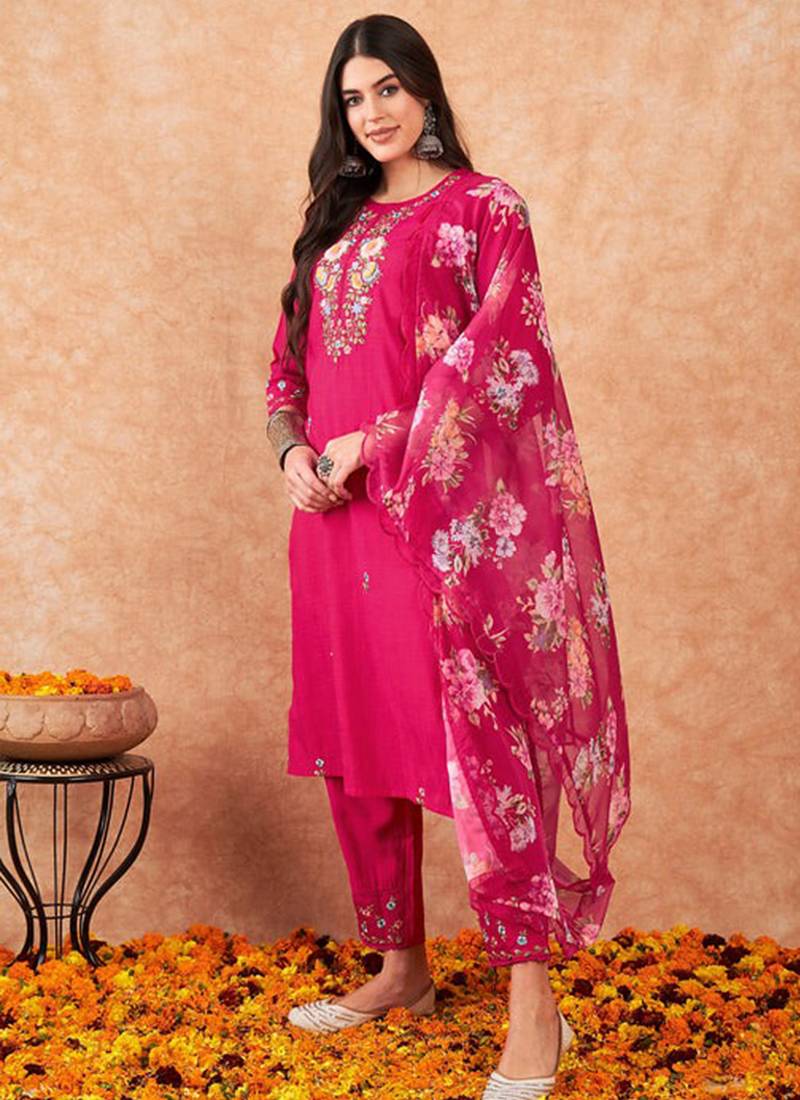| Product Name | Rani Pink Color Viscose Chanderi Sttiched Suit | |