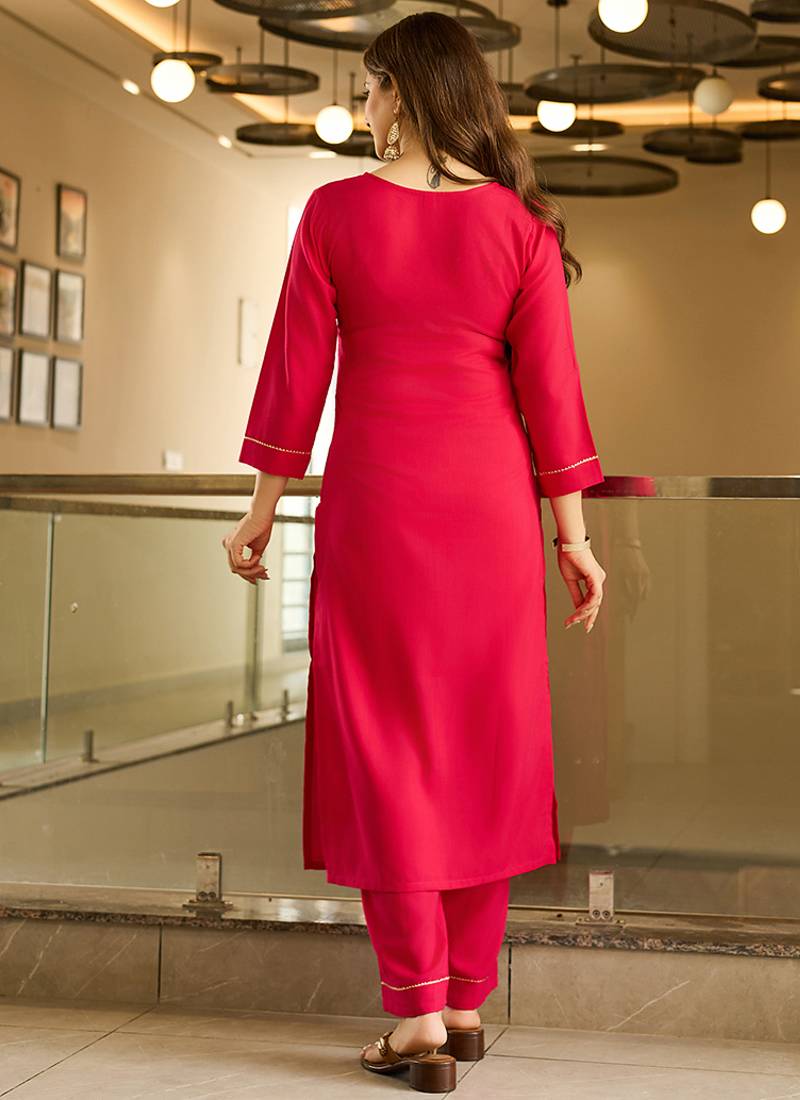 Product Name Rani Pink Color Viscose Ready Made Kurta Set