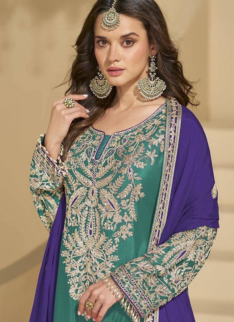 | Product Name | Turquoise Color Chinon Palazzo Suit | |