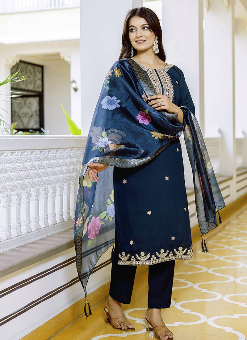 | Product Name | Viscose Chanderi Embroidered Suit In Navy Blue | |