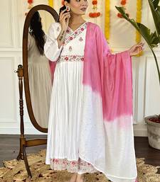 White color viscose chanderi embroidered anarkali suit stitched