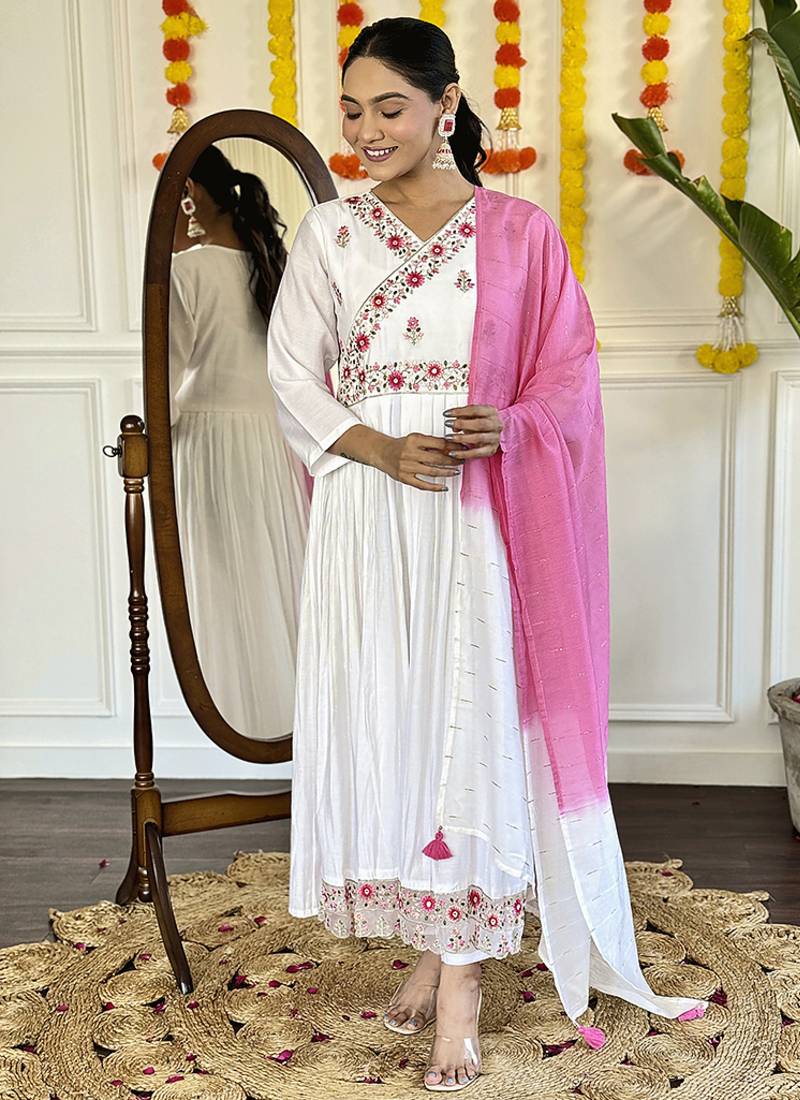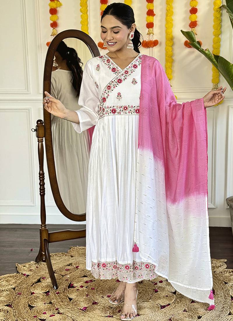 | Product Name | White Color Viscose Chanderi Embroidered Anarkali Suit | |