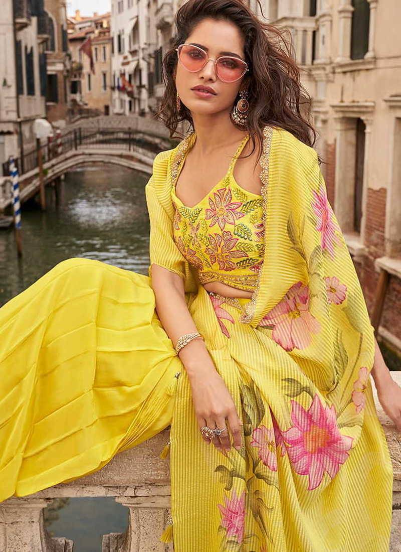 | Product Name | Yellow Chinon Silk Embroidered Stylisht Suit | |