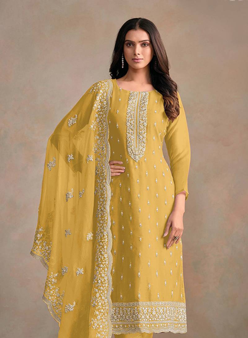 | Product Name | Yellow Organza Festival Pant Style Suit | |