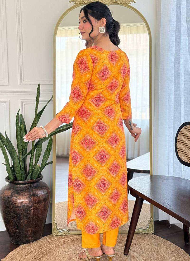 | Product Name | Yellow Rayon Printed Readymade Kurta Set | |