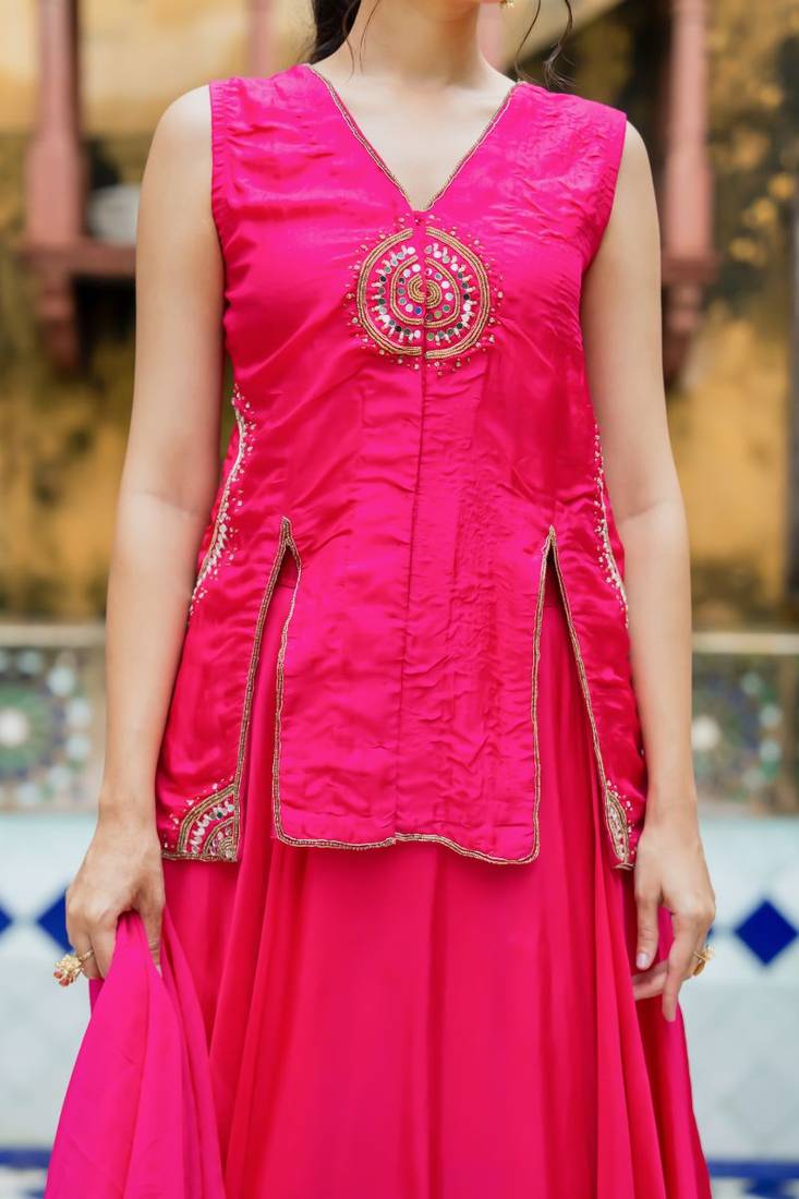 | Product Description | A Stunning Rani Pink Set Featuring Delicate Handwork, A Flowing Skirt, And A Coordinated Dupatta. The Graceful Silhouette Makes It Ideal For Weddings And Celebrations. |