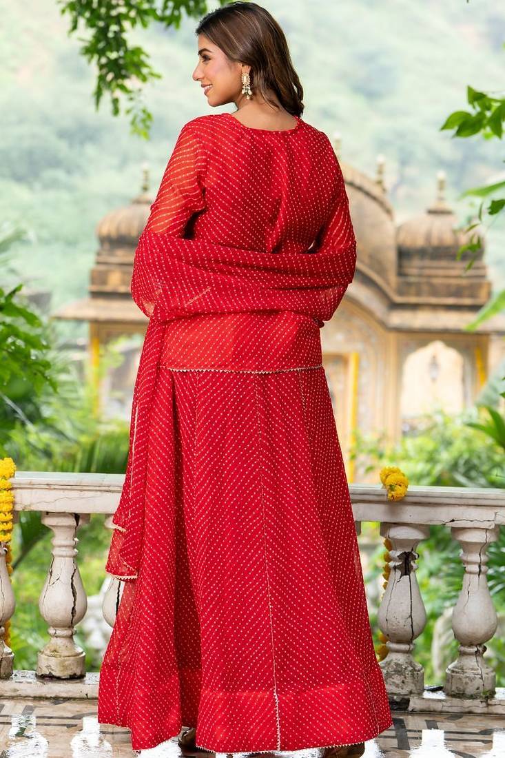 | Product Name | Red Bhandhini Georgette Gota Patti Lehenga Blouse And Dupatta | |