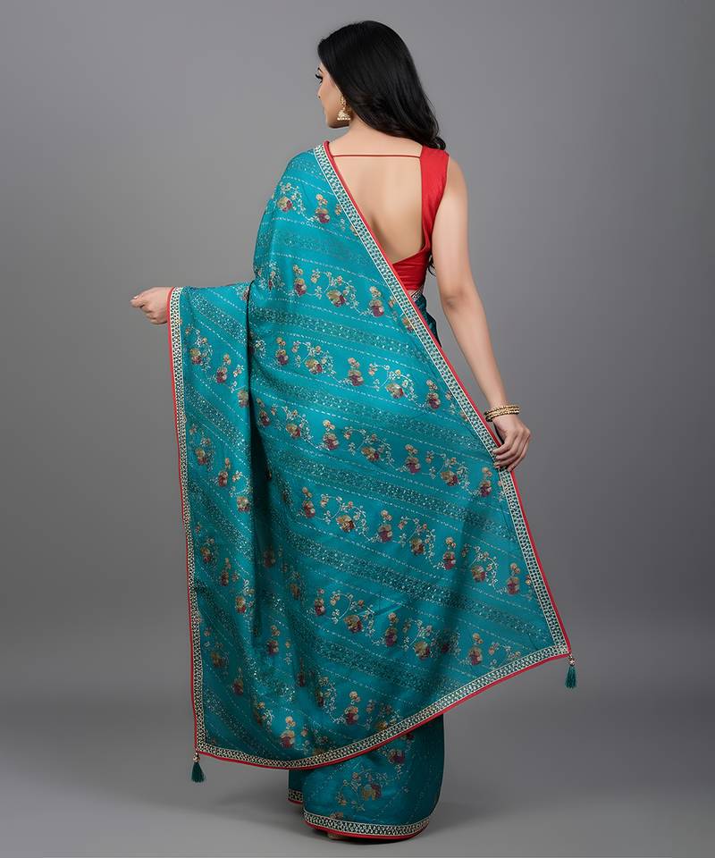 | Product Description | Blue Embroidered Satin Saree Featuring A Smooth, Glossy Finish And Elegant Drape. Adorned With Delicate Embroidery That Enhances Its Festive Charm. Soft And Luxurious, This Saree Is Perfect For Weddings, Celebrations, And Special Occasions, Adding A Radiant, Graceful Touch To Traditional And Contemporary Ensembles.