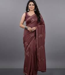 Maroon embroidered viscose saree