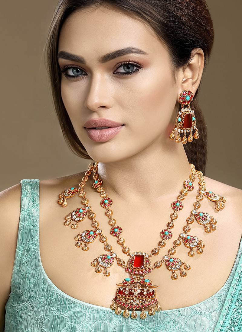 | Product Name | Gold Plated Kundan Red Stones Necklace Set | |