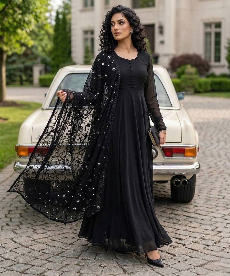 | • | Kameez | : | Color- Black / Fabric- Georgette |