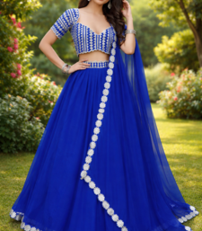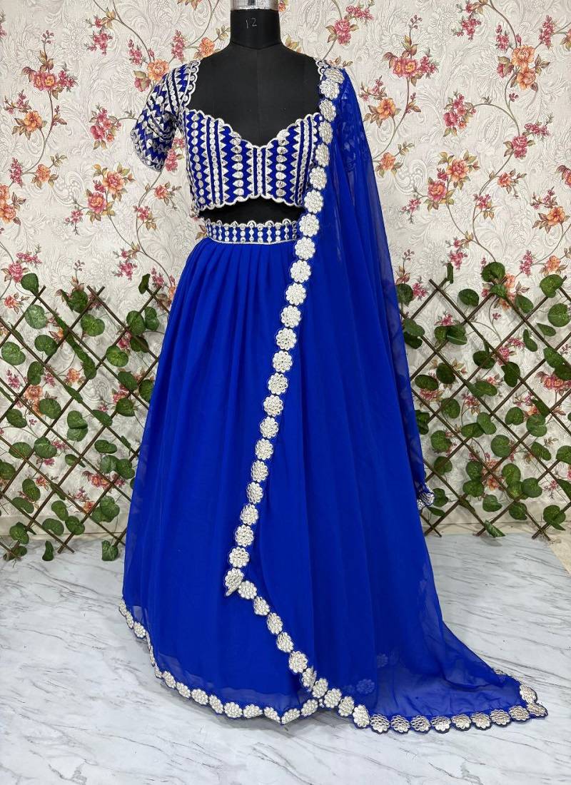 Product Name Blue Foil Mirror Work Georgette Lehenga Set With Dupatta