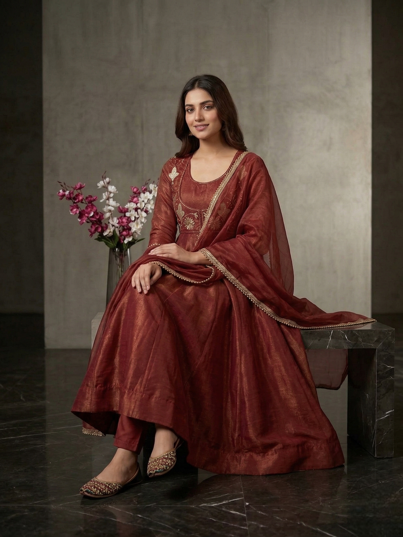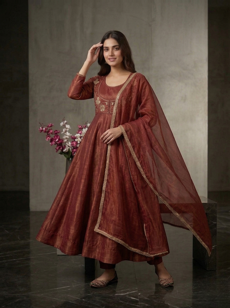 | Product Name | Bronze Heavy Cosmos Silk Embroidered Anarkali Salwar Kameez | |