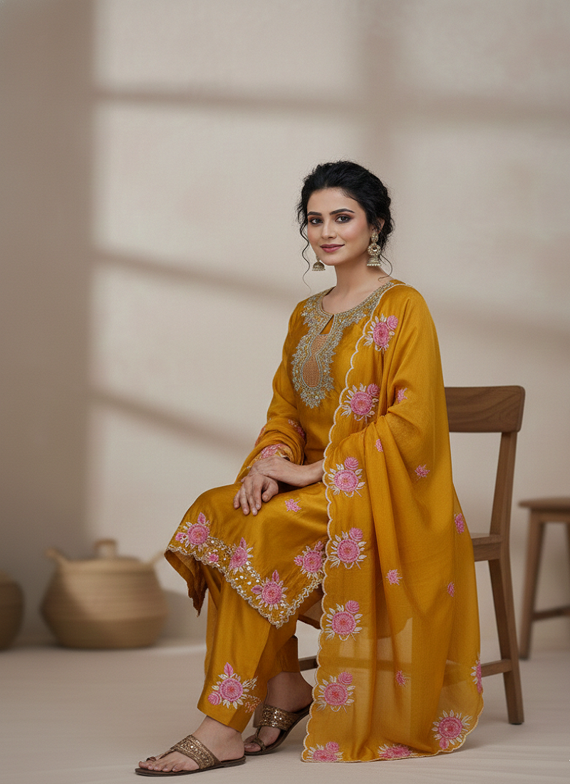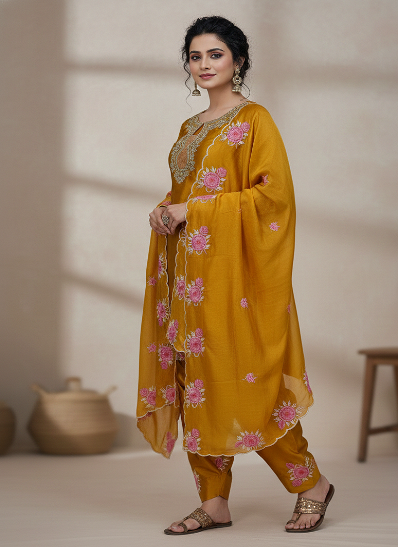 | Product Name | Yellow Japan Satin Suit With Organza Dupatta | |