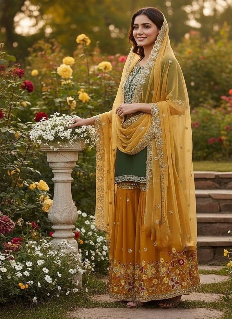 Bottom : Color- Mustard / Fabric- Faux Georgette