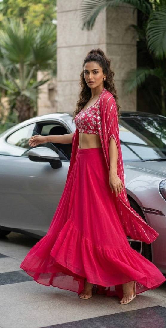 | Product Name | Pink Modern Georgette Skirt Set With Sequins & Zari Work | |