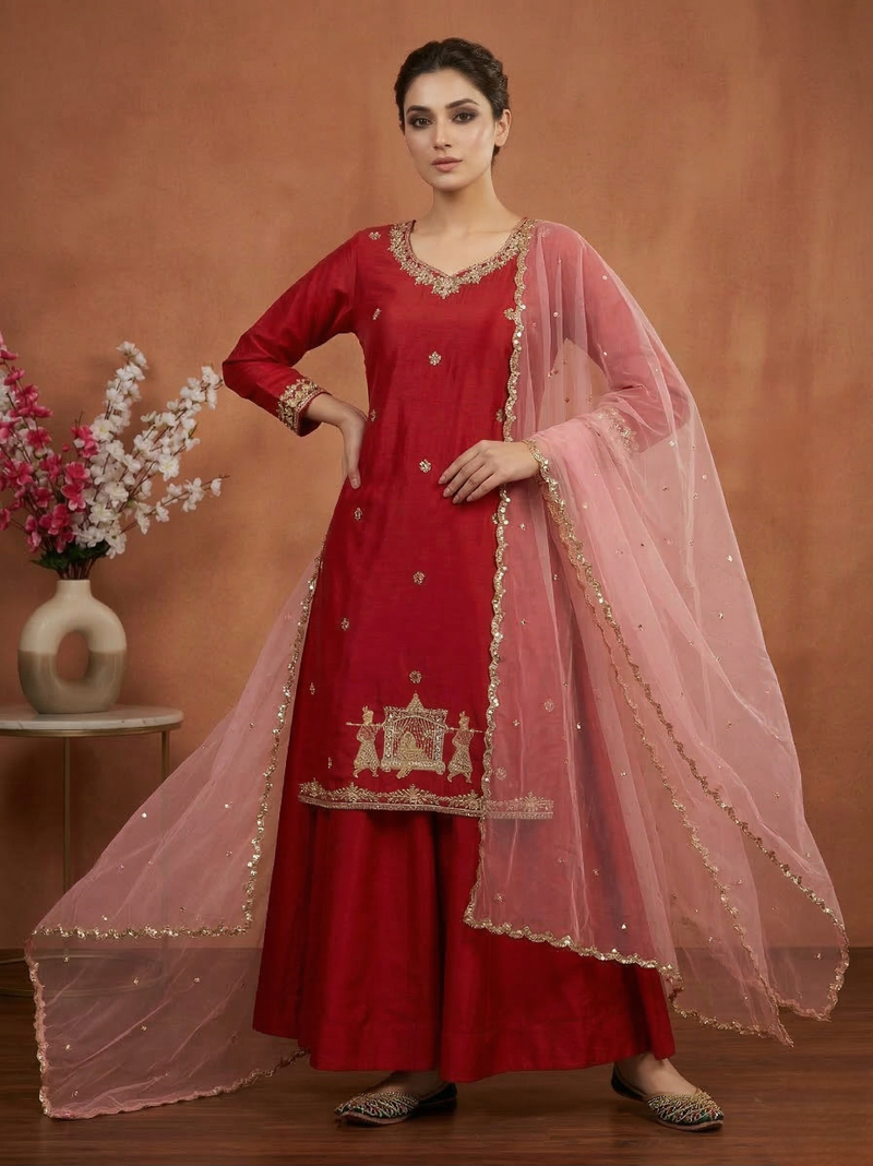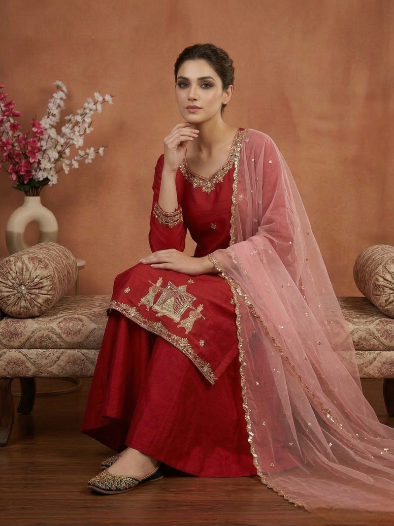 | • | Dupatta | : | Color- Red / Fabric- Net |
