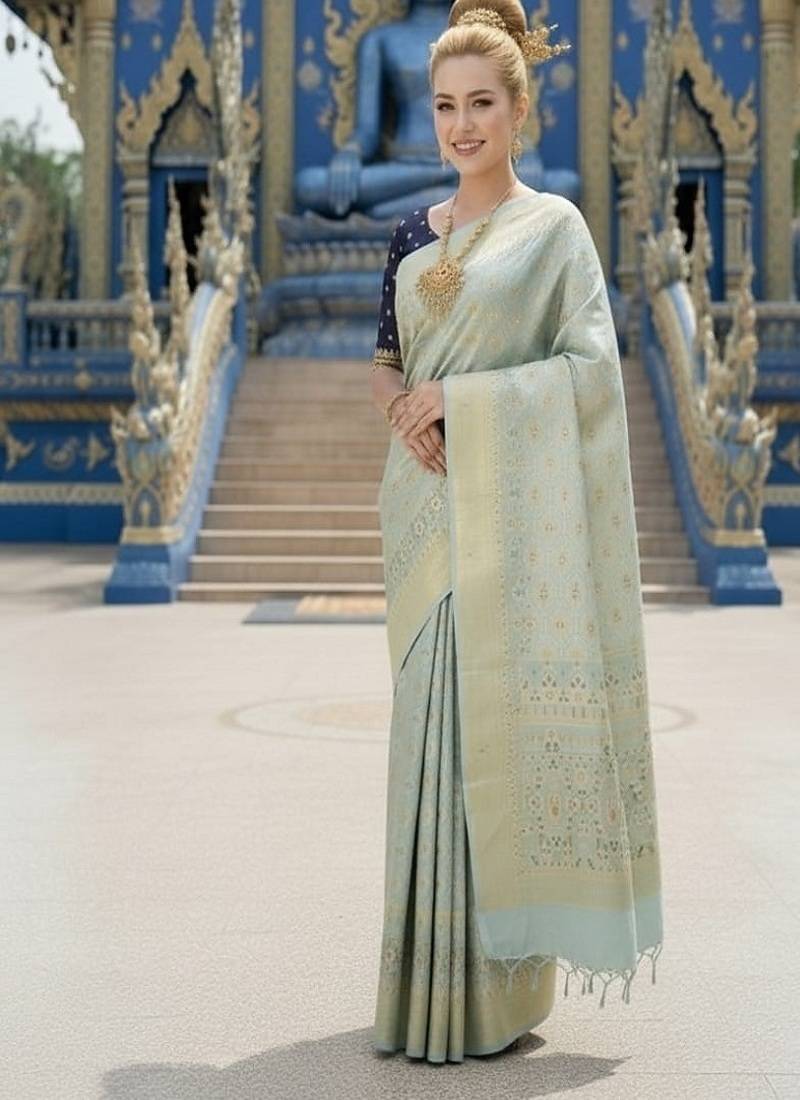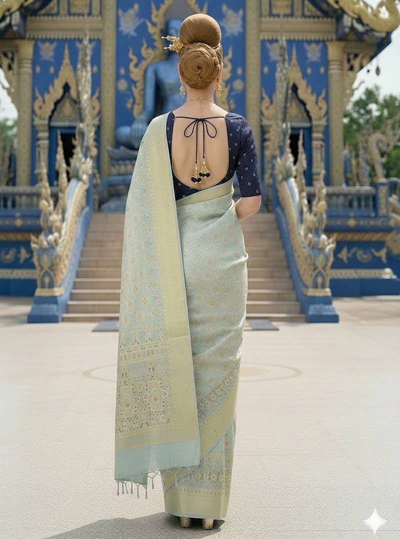 | Product Name | Blue Ready To Wear Jacquard Silk Saree And Ready To Wear Jacquard Silk Blouse With Cup | |