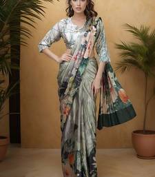 Grey crepe digital rtw saree with pocket and stitched blouse