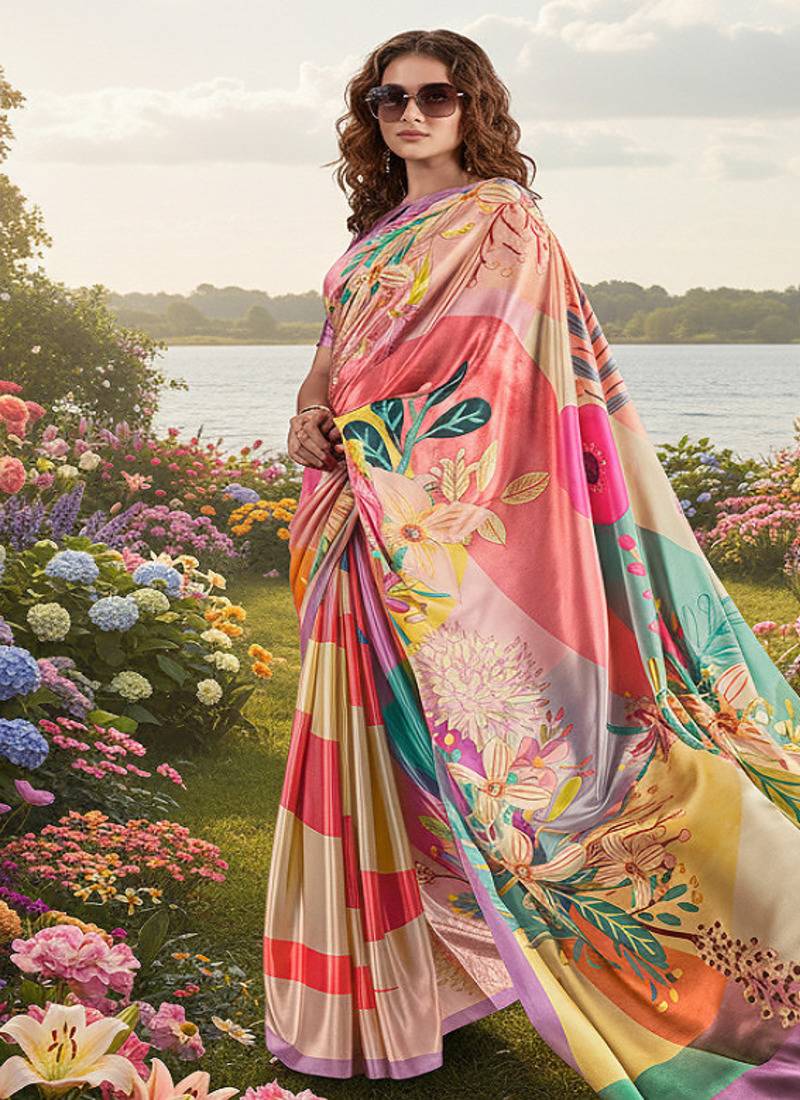 | • | Saree | : | Color- Multicolor / Fabric- Faux Crepe |